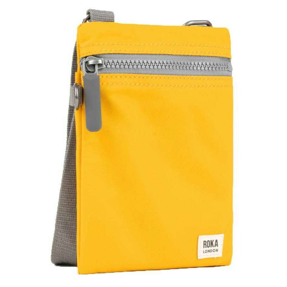 Perfect for men or women is this Roka saffron yellow chelsea recycled nylon sling bag, it is also made from 100% weather-resistant recycled nylon. It measures 18cm(height) x 13.5cm(width) x 2.5cm(depth). All the bags come complete with roka packaging. The Roka Chelsea Recycled Nylon Sling Bag - Saffron Yellow is a classically designed bag that is perfect whilst on the move. This luxurious bag was thoroughly produced using sustainable recycled materials which are guaranteed to last a long time. Sustainable Chelsea will keep your must have items, easily accessible and close by while you are on your journey. Do not be fooled by the modest size, it is spacious enough to store everything you need. Two pockets, one in the back and one in the main pocket with a sturdy zip for extra security.