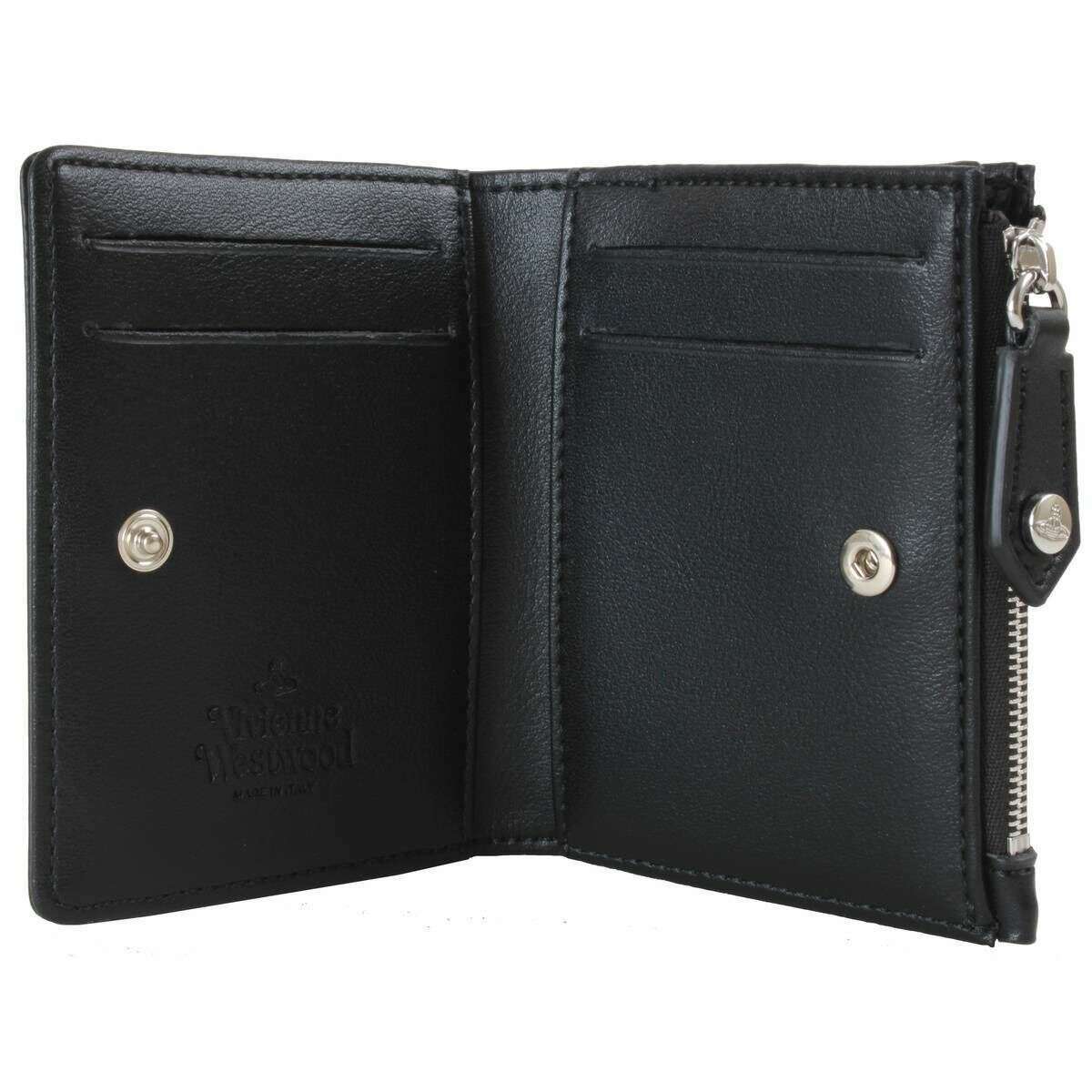 This women's slim flap card holder has been made from 100% polyester, featured in a black colour and is from the brand Vivienne Westwood. It measures 9cm(height) x 10.5cm(width) x 2.5cm(depth). All the purses come complete in vivienne westwood packaging. The Vivienne Westwood Slim Flap Card Holder - Black will make a stunning everyday purse if you want less of a bulky design that fits perfectly in pockets and smaller bags but doesn t falter on style. It has a simple press stud to open and close the card section which offers 4 card slots and on the other side is a zipped coin compartment. The iconic orb sits proudly on the front giving you the perfect companion.